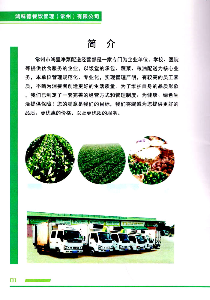 鴻味德餐飲管理(常州)有限公司是一家專門為企業(yè)單位、學(xué)校、醫(yī)院等提供伙食服務(wù)的企業(yè),以飯?zhí)玫某邪、蔬菜、糧油配送為核心業(yè)務(wù),本單位管理規(guī)范化、專業(yè)化,實(shí)現(xiàn)管理嚴(yán)明,有較高的員工素質(zhì),不斷為消費(fèi)者創(chuàng)造更好的生活質(zhì)量。為了維護(hù)自身的品質(zhì)形象,我們已制定了一套完善的經(jīng)營方式和管理制度:為健康、綠色生活提供保障!您的滿意是我們的目標(biāo),我們將竭誠為您提供更好的品質(zhì)、更優(yōu)惠的價格、以及更優(yōu)質(zhì)的服務(wù)。