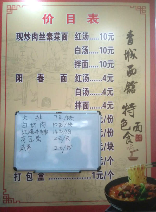 武進區(qū)青城面館經(jīng)營面積280平方米左右,主要特色是現(xiàn)炒肉絲,素菜蓋澆面,面館創(chuàng)始人今年63歲的王蘭珍,她對美食有著高于常人的悟性。她開過饅頭店,開過小飯館,承包過食堂,燒菜、取料樣樣在行,吃過的人常常贊不絕口。 20世紀初,在跟德興面館的老師傅學了做面手藝后,王蘭珍萌生了開一家面館的想法,除了可以養(yǎng)家糊口,最重要的是想讓更多人嘗嘗自己的手藝。于是,她在自己的住處擺起了幾張桌椅,面館就算正式營業(yè)了。因為家住青城橋,王蘭珍干脆取名“青城面館”。 “從早上5點多開始營業(yè),到下午1點多打烊,一天至少要賣掉300多碗面,用掉近160斤面粉!睘楹吻喑敲骛^的面條如此受歡迎,兒媳婦陸偉紅說秘訣在于湯頭和澆頭。湯頭分白湯和紅湯,白湯是由10斤豬骨頭熬制而成,湯色清澈而味道濃郁;紅湯以骨頭湯作底湯,加入茴香、甘草、草果等20多種中草藥,以及糖、醬油等調(diào)味品,鮮而不腥,散發(fā)出陣陣香味。 和一般面館事先燒制好澆頭,放在盆里供客人選擇不同,青城面館的澆頭都是一份份現(xiàn)炒的,特別講究食材的新鮮。就拿暢銷的肉絲蔬菜紅湯面來說,要先起猛火,把肉絲、木耳、蘑菇、青菜等食材放一起煸炒至香,然后澆在撈起的面條上。一碗面出來,現(xiàn)炒的澆頭與面條融合,味道香郁至極。 遙觀人的早晨,醒得有些早。對很多遙觀人來說,美好的一天是從青城面館開始的。那一碗碗現(xiàn)炒的蓋澆面,筋道爽滑、醬香味濃,溫存著他們的胃與記憶,帶來刻進骨子里的家鄉(xiāng)味道。