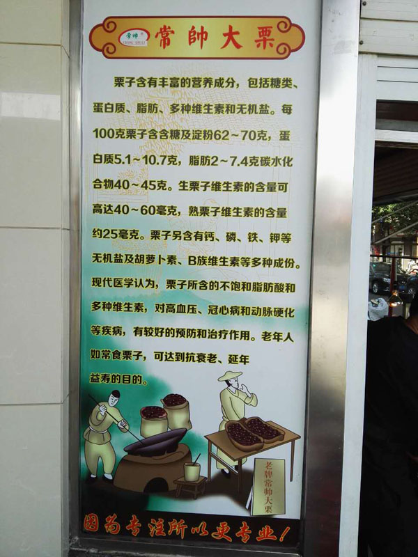 在熱鬧的懷德中路花園菜市場口有一家開了二十幾年老字號店,店面不大,但應(yīng)該是花園地區(qū)味道最好的大栗了,這就是常帥大栗。他家的大栗又香又糯,熱的時候殼很好撥,沒有一粒是壞的,一股令人迷醉的香味飄送到四面八方,這股甜蜜的滋味便是獨(dú)屬于糖炒栗子的味道。瑟瑟寒風(fēng)中,抱一抱溫香的糖炒栗子,輕咬一口金黃的栗子肉,香甜軟糯的滋味從舌尖直抵心頭。是每一個愛吃甜食的人難以抗拒的享受。常帥大栗除總店外,另外又增設(shè)了五家分店分布在常武地區(qū)各鄉(xiāng)鎮(zhèn)。深受廣大消費(fèi)者歡迎。