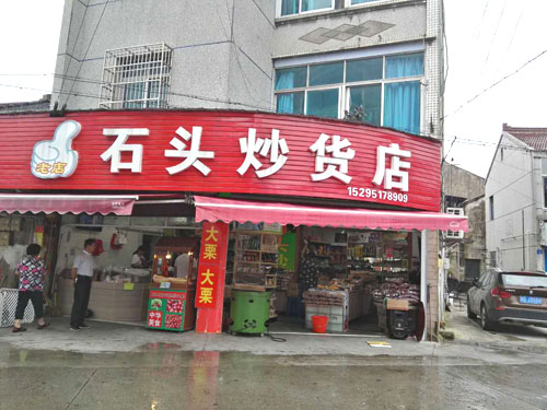 湖塘花東街上的“石頭炒貨店”是20多年的老字號(hào)了。上個(gè)世紀(jì)90年代,二十郎當(dāng)歲的“石頭”一一石愛軍從徐州來(lái)到武進(jìn),就在這條街上擺了個(gè)炒貨攤!皫灼椒矫椎男〉?cái),邊上架個(gè)大鐵鍋,炒出的瓜子、花生、蠶豆,鋪在竹篾上篩過(guò)、冷卻后就可以賣了!笔瘣圮娀貞洠址秽徖锩爸盏膰(yán)寒,擠在地?cái)偳皣L著剛出鍋的瓜子的場(chǎng)景,還歷歷在目。20多年過(guò)去了,鄰居們都成了最熟悉的親人,從年輕姑娘到抱著孫子的老人,大家還是最愛吃石頭炒的瓜子。而炒貨店的店面也擴(kuò)大了,并且在湖塘另開了多家分店。 生意最好的還是花東街上的老店。不大的店面,被一袋袋瓜子、花生、蠶豆、核桃堆得滿滿的,空氣里也滿滿都是堅(jiān)果的香氣。超大瓜子唇齒留香,去皮瓜子鮮香入昧,南瓜子皮薄肉厚,還有開心果、手剝松子、小油果、核桃、碧根果、小黃豆,以及炒米糕、蛋卷、麻松條、紫薯干、地瓜干、山芋片、鍋巴、芝麻糖、山楂、麻花、葡萄干….這么多美昧都是老板親手制作。愛吃點(diǎn)什么,就用一 長(zhǎng)柄勺鏟點(diǎn)兒什么,最質(zhì)樸簡(jiǎn)單的包裝袋里,裝著的是屬于這條老街居民記憶里的味道,穿過(guò)幾十年的時(shí)光,仍然鮮活生動(dòng)地銘刻在每一個(gè)人的里。 “少東家”石榮沖就是在這個(gè)老店、這條老街長(zhǎng)大的。他說(shuō)目前自己炒瓜子的技藝還沒(méi)到火候,還在跟著父親學(xué)習(xí)的階段!碧暨x原料、炒制工序,每一步都有學(xué)問(wèn)在里頭!蹦玫陜(nèi)的銷售冠軍“內(nèi)蒙大瓜子”來(lái)說(shuō),這種來(lái)自內(nèi)蒙、經(jīng)過(guò)充足日照的葵花子每顆長(zhǎng)度近2厘米,個(gè)頭特別大,也十分飽滿。拈一顆大瓜子,就連嗑起來(lái)的聲音也分外清脆。外皮很容易與內(nèi)仁剝離,碩大的瓜子仁口感十分香脆,與別家作料用得很足、吃起來(lái)特別鮮咸的瓜子不同,這種大瓜子更注重烘托原昧,淡淡的咸昧在舌尖掠過(guò),剩余的都是屬于瓜子的天然香甜。