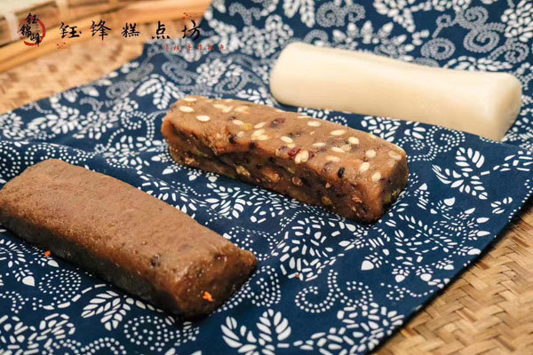 腳踏糕本名“年糕”,按常州周邊地區(qū)的風(fēng)俗習(xí)慣,在春季前夕,各家各戶都要蒸年糕,吃年糕!案狻敝C音“高”,過年吃年糕被賜予“年年高”,一年高一年,鋒吉祥之意,表達(dá)這人們對未來美好生活的憧憬和良好的祝愿。今天小編要帶大家的就是一家至今保持著傳統(tǒng)手工制作的鈺鋒糕點(diǎn)坊。   鈺鋒糕點(diǎn)坊位于常州鄭陸鎮(zhèn)三皇廟范家莊,一個(gè)比較偏僻的村莊,雖然這家作坊不大,但香糯絲滑,軟糯適中,韌勁十足的腳踏糕吸引了無數(shù)的食客。制作一條腳踏糕要從淘米,浸泡,碾粉,鋪粉,一層一層的鋪下去,需要無數(shù)道制作工序,這些都是店主孫煥公公老周,憑著幾十年的經(jīng)驗(yàn),加上店主孫煥從不馬虎的決心!   這“腳踏”也并非赤腳上陣,而是把蒸好的糕倒入早以準(zhǔn)備好的框子里,用布包裹好,上面再用薄膜包好,再蓋上布,再換上專門腳踏的布鞋,踩的時(shí)候要?jiǎng)蚍Q,左右腳要配合好,不然糕會(huì)高高低低,不平整,最后再拿蠟燭線拆成一條小長條,再拿帶包裝好,如此又香又糯的腳踏糕就大功告成了。   店主孫煥為了讓更多的人認(rèn)識(shí)和了解常州腳踏糕的傳統(tǒng)文化和美食,她在傳統(tǒng)工藝中增加了適合現(xiàn)代文化的多種口味,她在糕里加入南瓜,紫薯,老紅糖,大麥汁,血糯米,核桃,葡萄干,紅棗等食材,做出五顏六色,純天然的口味,深受食客們的喜愛,不管是送人還是自己吃都非常新穎。