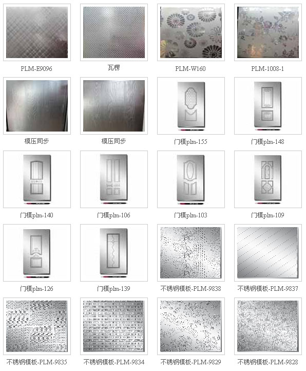 我公司是一家專業(yè)研發(fā)、制造不銹鋼模板、電梯裝潢板等產(chǎn)品的廠家,產(chǎn)品主要適用于壓制三聚氰胺貼板、強(qiáng)化復(fù)合地板、膠合板、PVC板等。 公司主要產(chǎn)品有鏡面、亞光、麻面、浮雕、水晶面、木紋、布紋、皮紋、石紋、瓦楞紋等常規(guī)類不銹鋼模板和裝飾板,以及V型槽、R型槽、波浪紋、手抓紋、仿真對(duì)紋等高檔復(fù)合地板專用模板。本公司堅(jiān)持以最優(yōu)質(zhì)的選材,最精湛的工藝,最先進(jìn)的技術(shù)用心打造每一款產(chǎn)品,使之藝術(shù)感與實(shí)用性并存,充滿著生機(jī)與活力,為客戶提供更多更理想的選擇。公司最新推出模壓門專用模板,可壓制各種三聚氰胺貼面門皮,為浙江永康門都以及全國各大門廠提供優(yōu)質(zhì)服務(wù)。